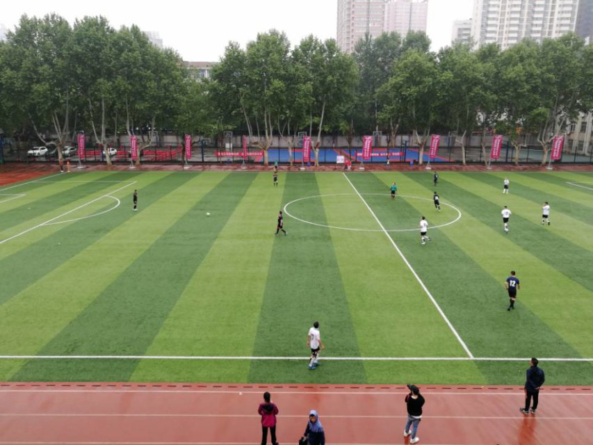 不久,双方球员和一些观众进入了场地。双方球员握手以后,随着主裁判的一声哨响,比赛正式拉开了帷幕。我们青协的成员在场边有条不紊的保证比赛顺利进行。我们有的担任计分员,有的担任捡球员,有的则是拉拉队,为自己喜欢的球员和精彩的足球比赛呐喊助威,有的手里拿着水毛巾等以备不时之需。随着比赛的进行双方队员你攻我守,你来我往我们也因为球员的精彩操作而喝彩连连。虽然天空中的雨越下越大,但是球员们冒着雨踢比赛的热情丝毫不减。他们的衣服都已经湿完了。但是他们依旧在奋力比赛。我们场边的每个青协的志愿者也都热情高涨,在保障比赛正常进行的同时,我们淋着雨给球员们大声呐喊助威。虽然我们衣服湿了,嗓子哑了。但是我们依旧坚守在比赛场地为队员们提供志愿服务。