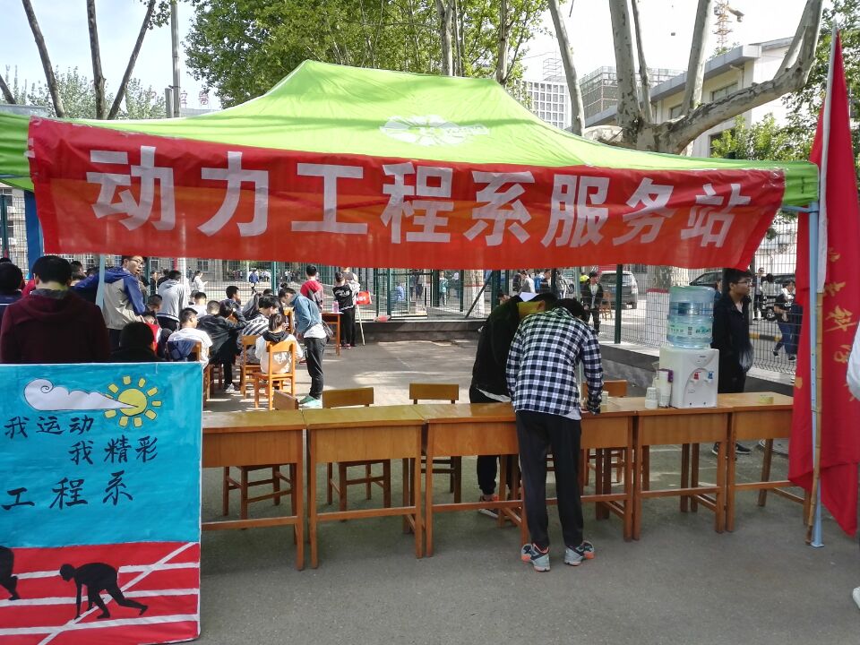2017年4月21日,买球赛的app官网举行2017年春季田径运动会。为了确保运动会的顺利进行,动力系团总支召集志愿在篮球场位置处设立了“运动会系团服务站”。秉着“有时间做志愿者,有困难找志愿者”的理念,大家都拼尽全力为此次运动会保驾护航。