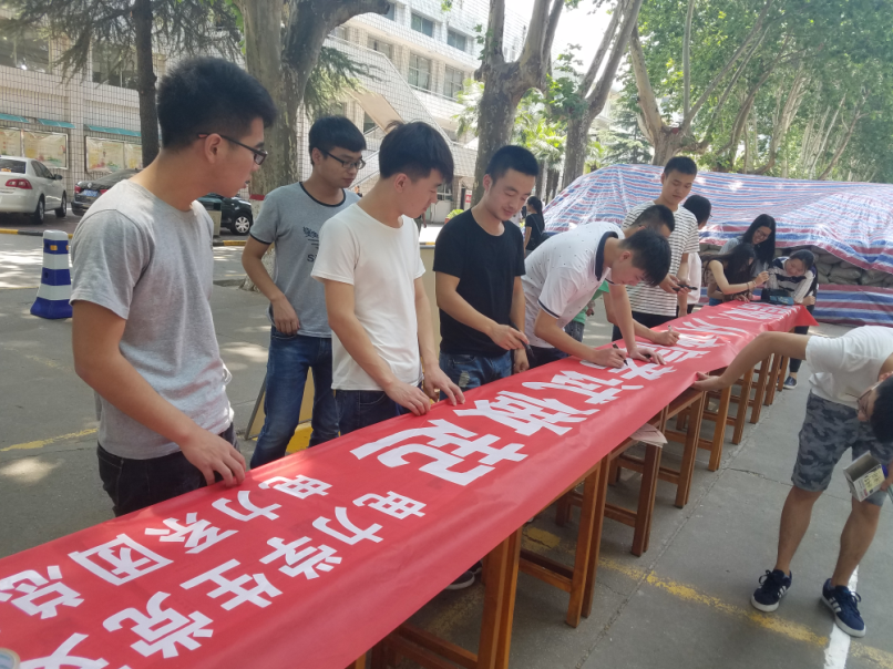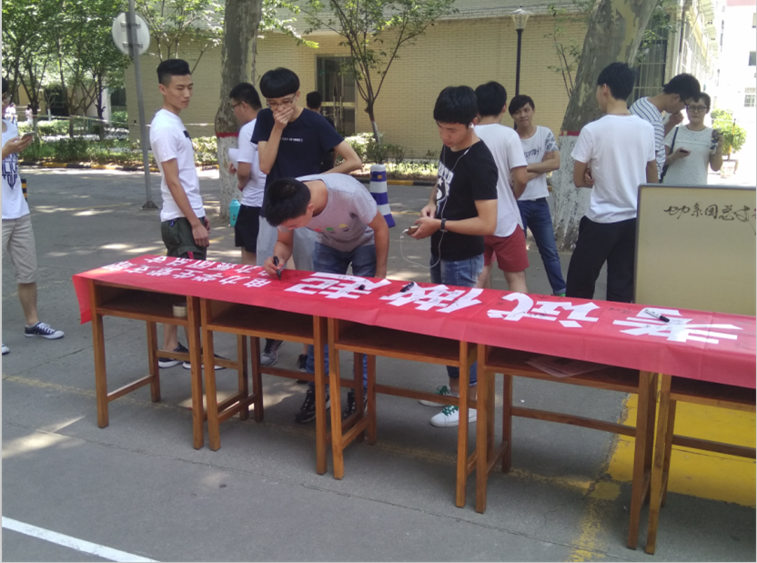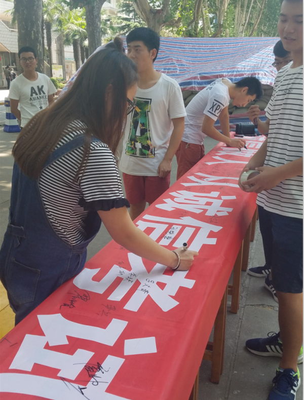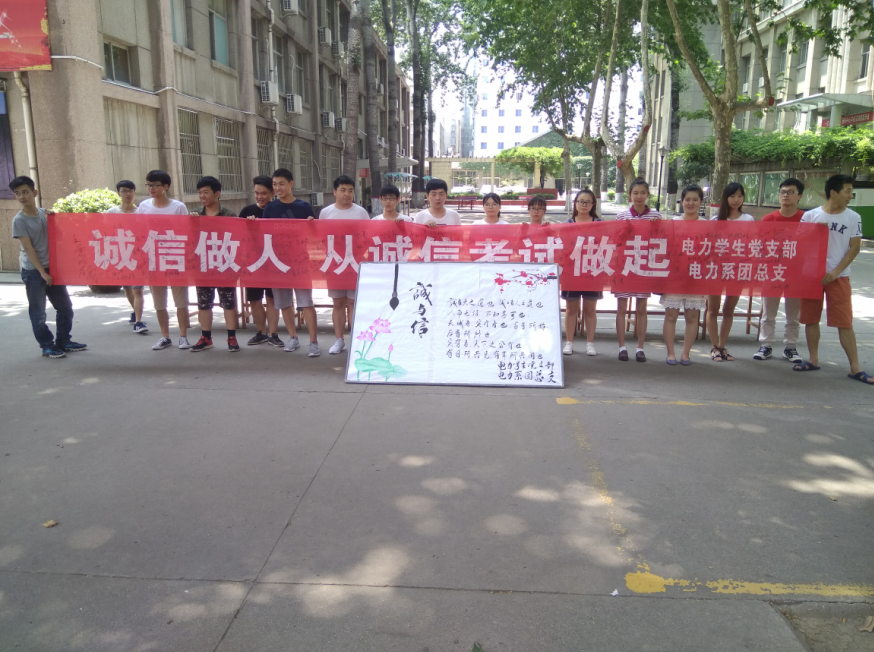 学期接近尾声,期末考试已在眼前。很多同学都在忙碌的复习中,但有极少部分的同学存在侥幸心理,为了进一步加强我校大学生诚信教育,严肃考风考纪,6月29日中午12:00到12:30,电力系团总支学生干部在南北教学楼之间开展了“诚信考试”的签名活动。